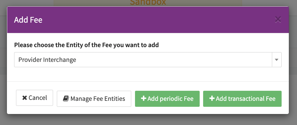 - Click either + Add periodic Fee or + Add transactional Fee depending on the type of Fee you want to add