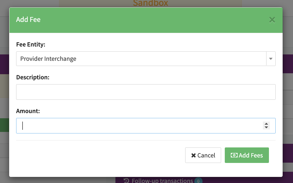 Transactional Fees, in comparison to periodic Fees, are directly related and applied to Transactions processed by the Connector. You can configure as many Transactional Fees as you want.