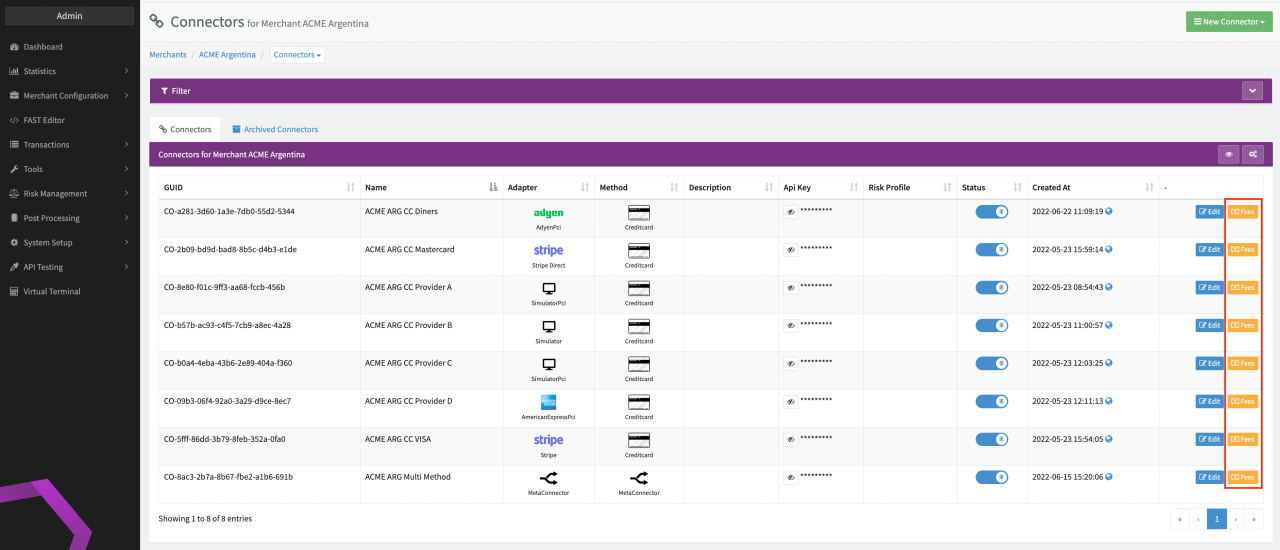 In the following section you will learn how to set up and assign individual transactional and periodic Fees on the Connector level using previously predefined Fee Entities.