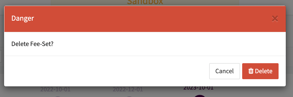 Example: If today were May 1st, and we had Fee-Set A which started from February 1st, and another Fee-Set B which will start from May 5th, we can conclude that Fee-Set A is applied. On May 5th, Fee-Set B will become the applicable Fee-Set with the most recent Valid from date and will become active, therefore Fee-Set B is disabling Fee-Set A. In order to re-use Fee-Set A, for example if Fee-Set B was only temporary, you can either delete Fee-Set B on the day it's not needed anymore or, more elegantly, copy (see Copy Fee-Set) Fee-Set A and set a Valid from date from which on you want Fee-Set B to be invalid.