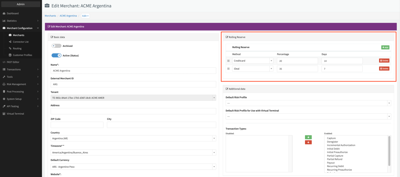 - Rolling-Reserve from Merchant Configuration - Rolling Reserve Calculation based on the Merchant Rolling Reserve Configuration (see Rolling-Reserve and section Rolling Reserve)