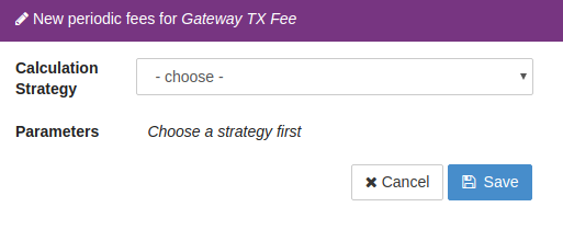 | Parameters | Fill in and/or Select the Parameters depending on the choosen Strategy. For a detailed description refer to Transactional Fee Strategies section | Fee Parameter Options |