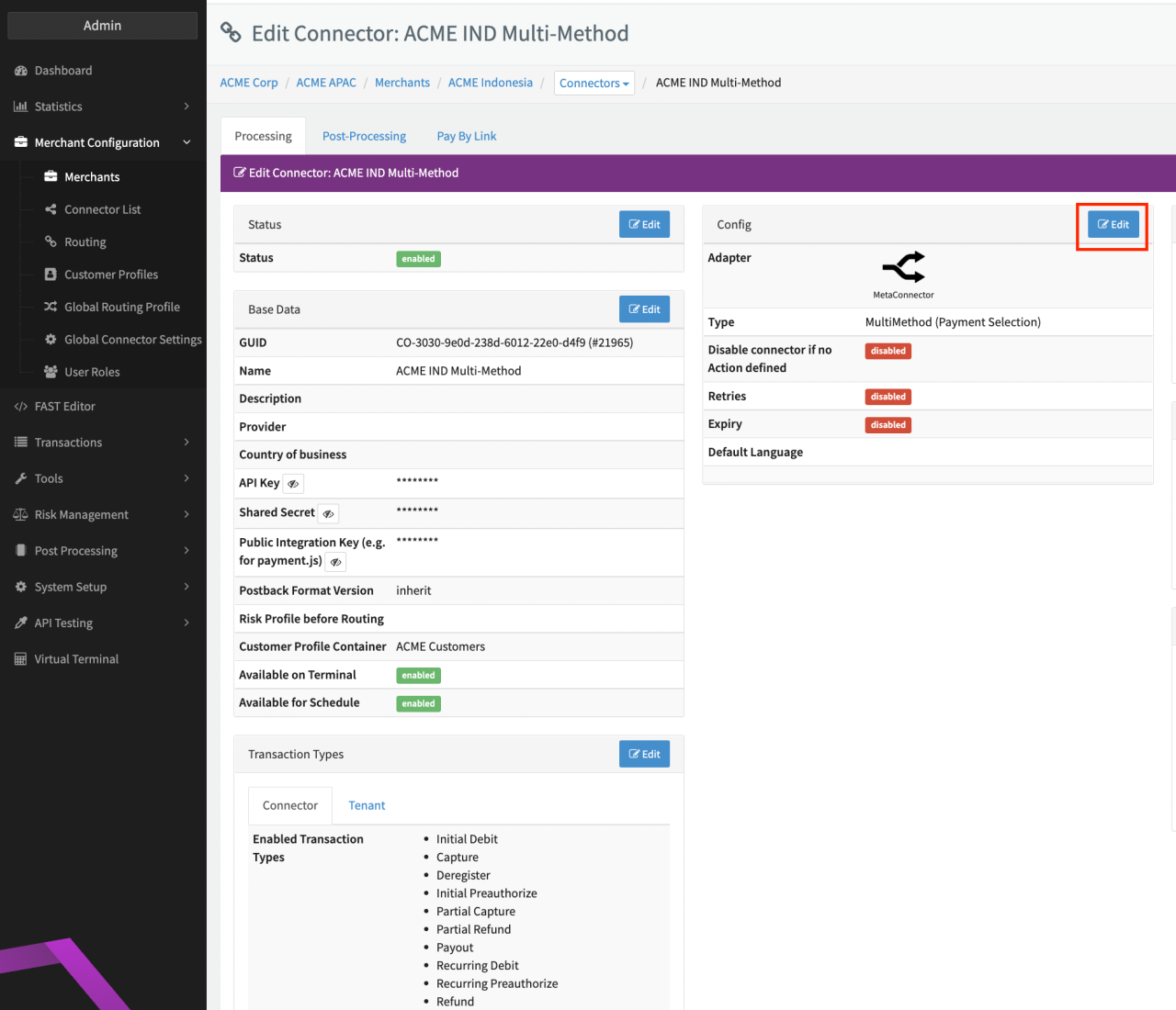 - Click Edit in the Connector Details Overview of your Multi-Method Connector