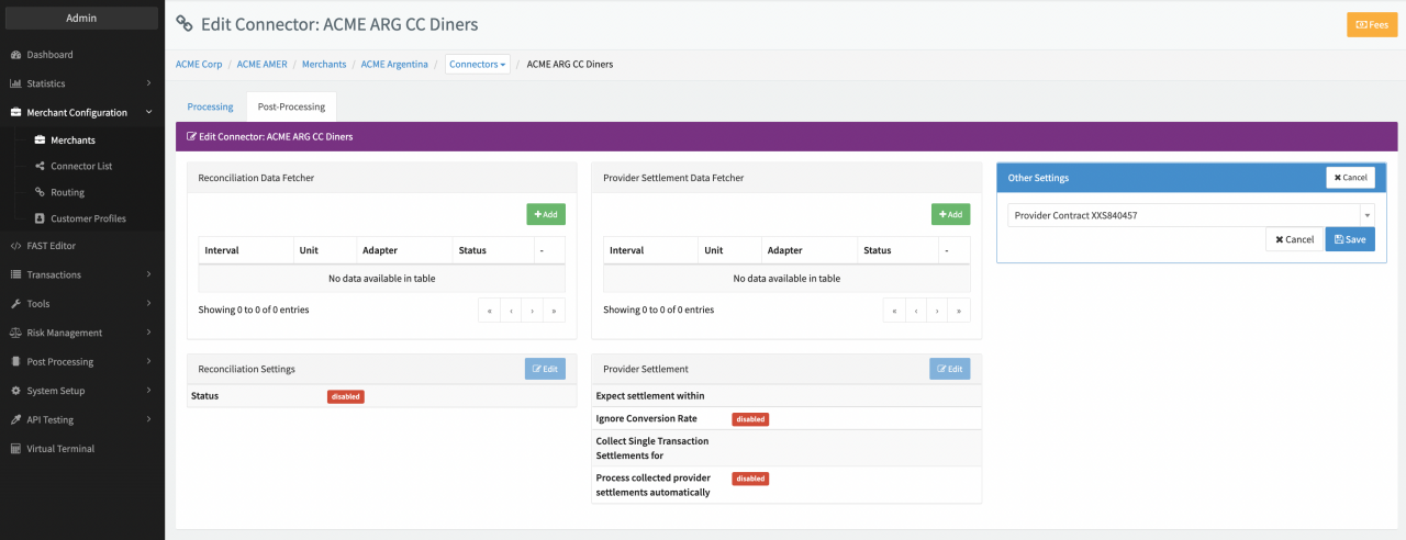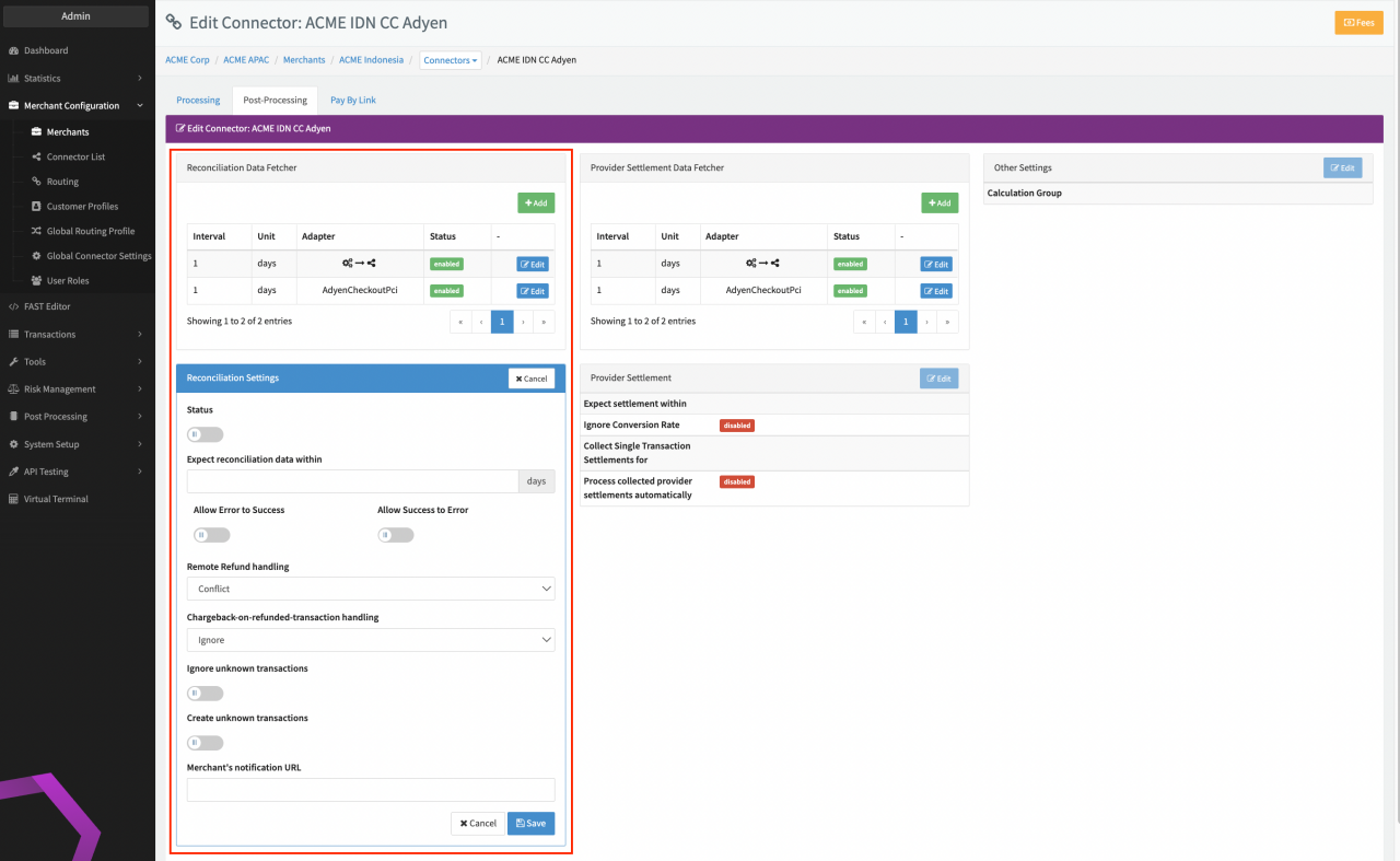 Post Processing - Reconciliation / Settlement on the Connector Level