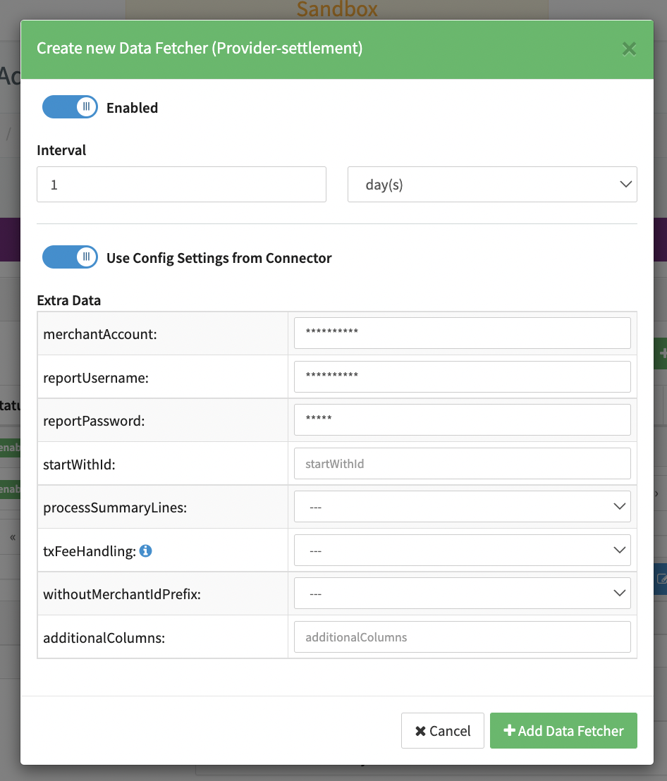 - Click + Add to configure a new Provider Settlement Data Fetcher