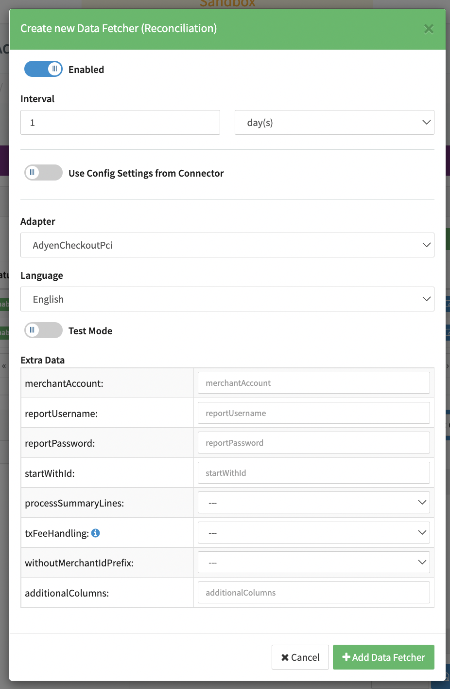 - Click + Add to configure a new Reconciliation Data Fetcher