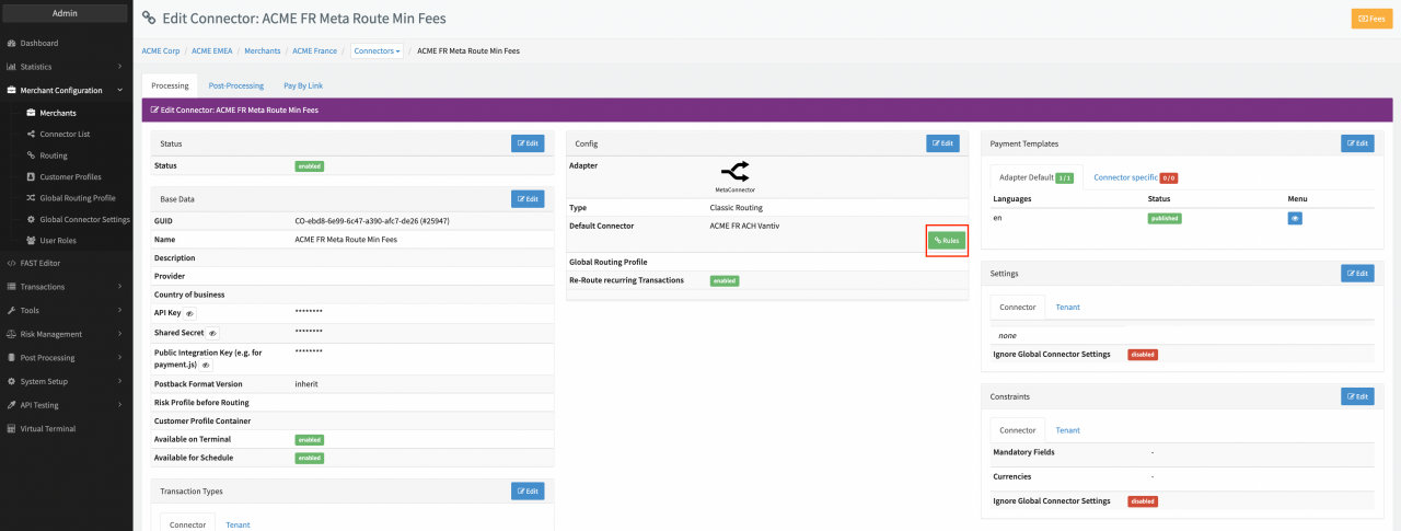 The first step to implementing routing, cascading, balancing and fallback strategies for your merchants is to create a so called Meta-Connector.