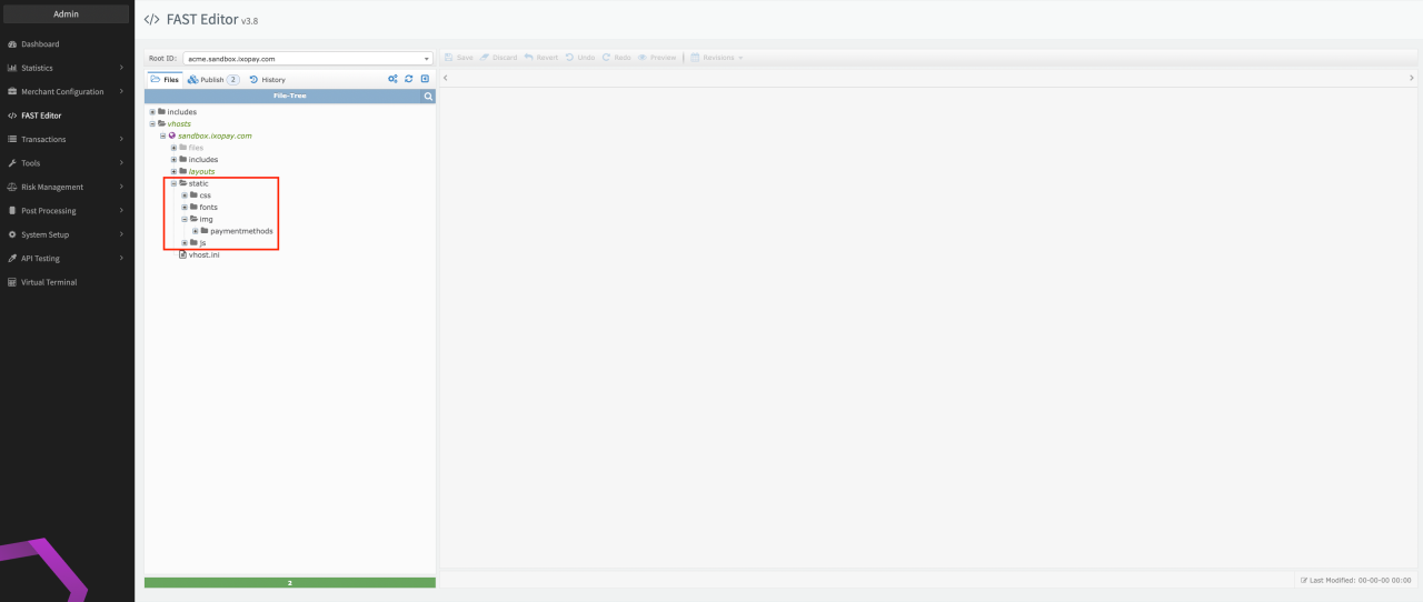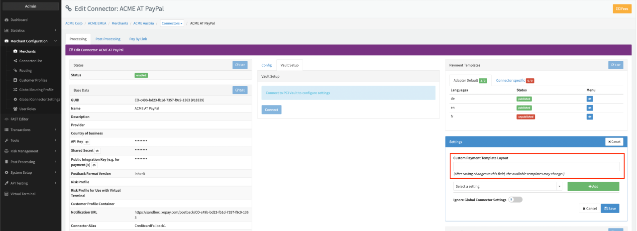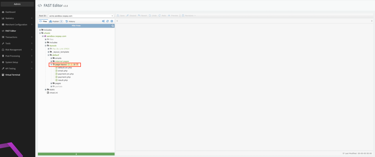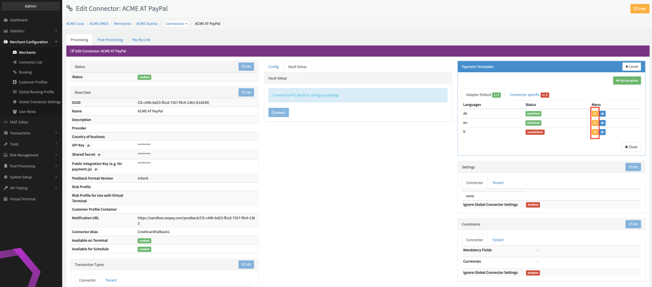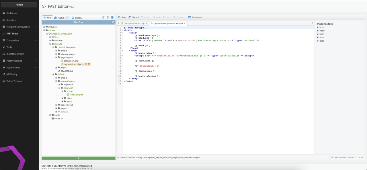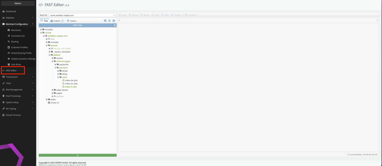 In general it is recommended to create and adapt templates within the embedded (FAST) Editor screen with in the Connector Details Overview - Payment Templates Edit View in order to ensure the correct path and variables to be set by the gateway. Nevertheless you also have the option to use the Fast Editor section itself.