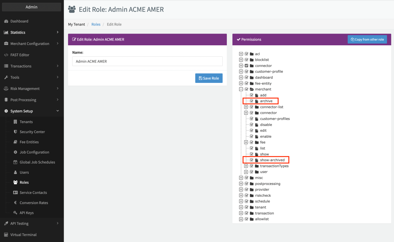By archiving Merchants you can keep the Global Merchants Overview tidy without losing valuable data. To be able to do that your user must have the permissions "merchant.archive" and "merchant.show-archived"