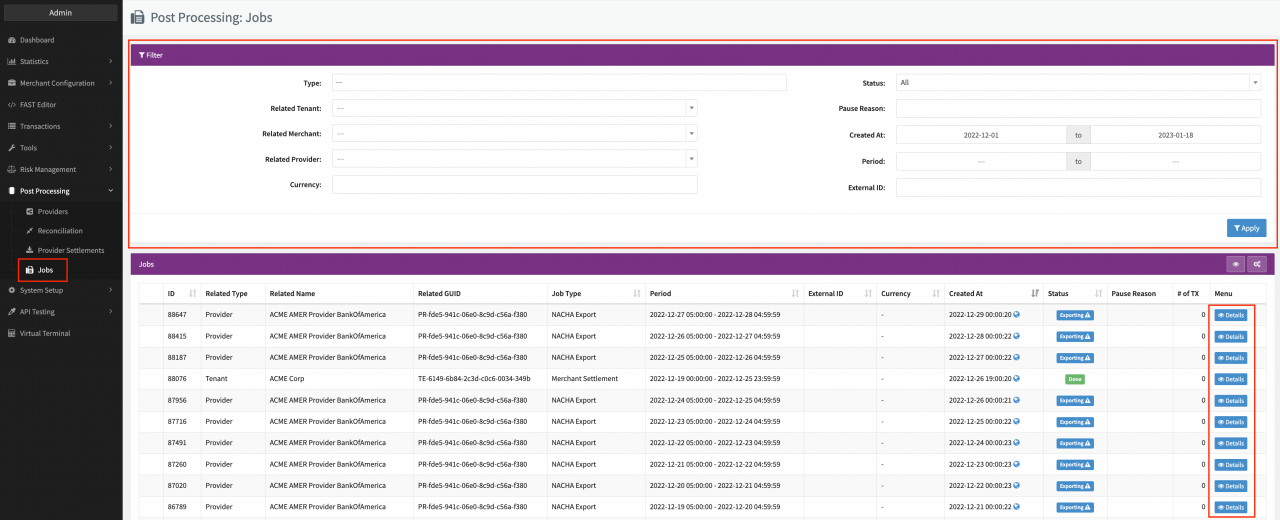With IXOPAY platform's Post-Processing Job Engine, you can automate ETL (Extract, Transform, Load) Jobs dealing with Transactions.