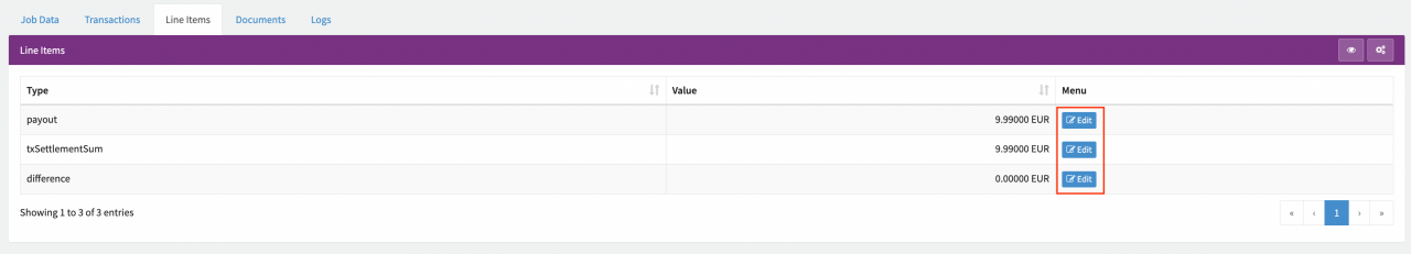 - Line Items: these are the results from the "Processing" steps (e.g. sum of Transaction Fees, split by certain criteria, etc.)
