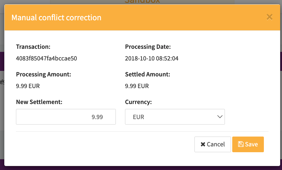 - Amount: The settled amount does not match the (calculated) settlement amount (based on conversion rates)