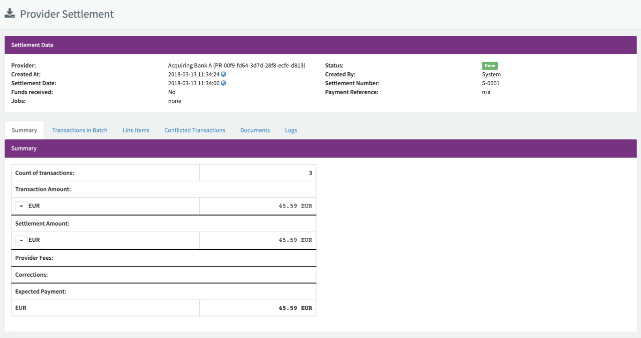 Before you ca manage provider settlements, settlements need to be enabled for your connectors as covered in the adapter-specific documentation. You may need to configure provider settlement data fetchers and settlement settings.