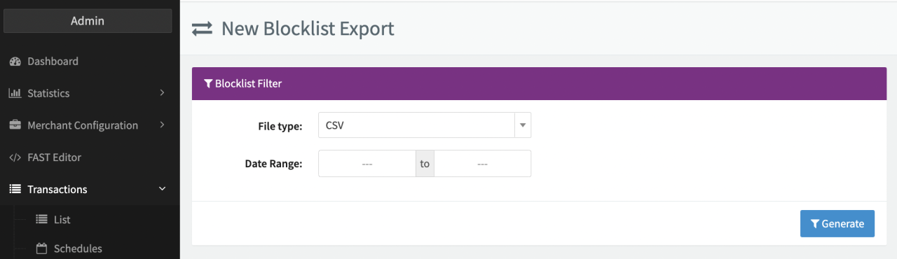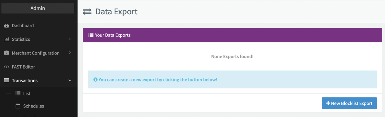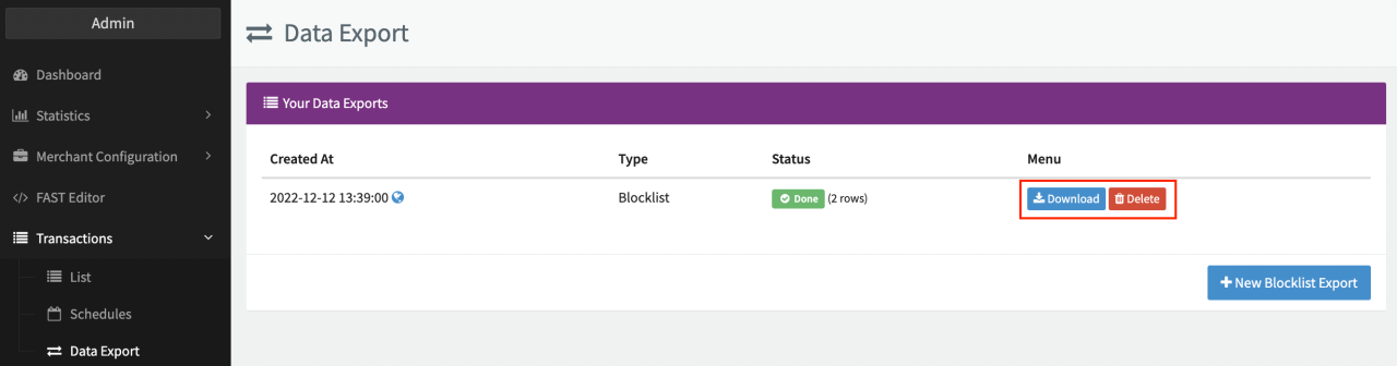 - Click on + New Blocklist / Allowlist Export.