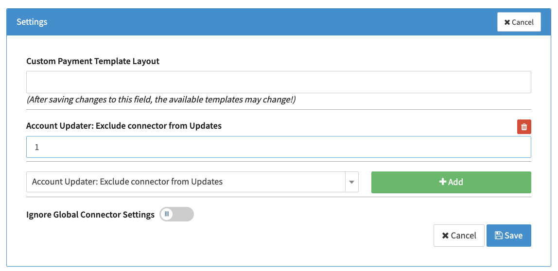Want to exclude the IXOPAY Account Updater for several connectors? Use our Global connector settings feature as described here.