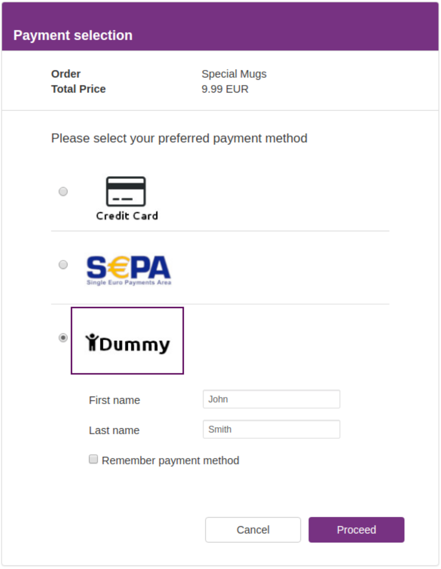 - rememberMethod — to save the selected payment method as "last used payment method"