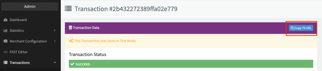 To ensure investigations and troubleshooting are as quickly as possible, please include as much of the information (e.g. sample Transaction UUID, description of issue) as you can when contacting our Support Team in the IXOPAY Customer Experience Portal when encountering issues. For easy use click the Copy Tx URL Button in the Transaction Data.