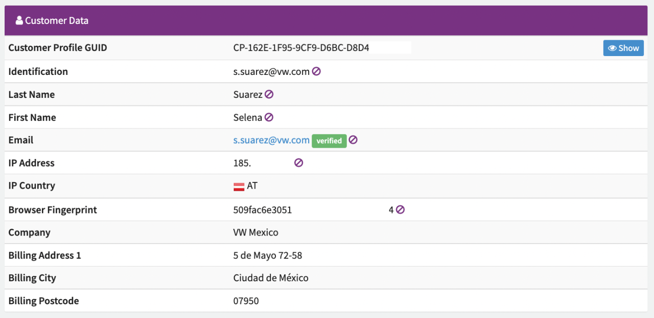 | Browser Fingerprint | Browser Fingerprint. See also Blocklist Customer Data from Transaction list |