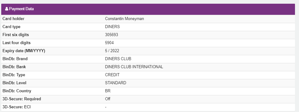 | BinDb: Brand | Card brand |