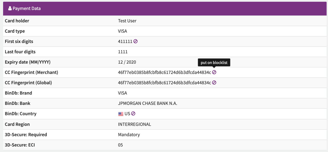 Within the Transaction list a User has the opportunity to add Customer Data with one click to the Blocklist.