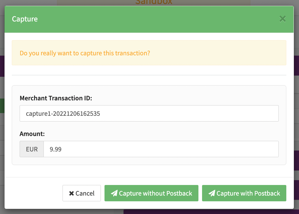 Depending on the given Permissions and prerequisites, Users can (partially) capture transactions manually. This can be done by using the Capture Action Buttons in the Transaction Details.